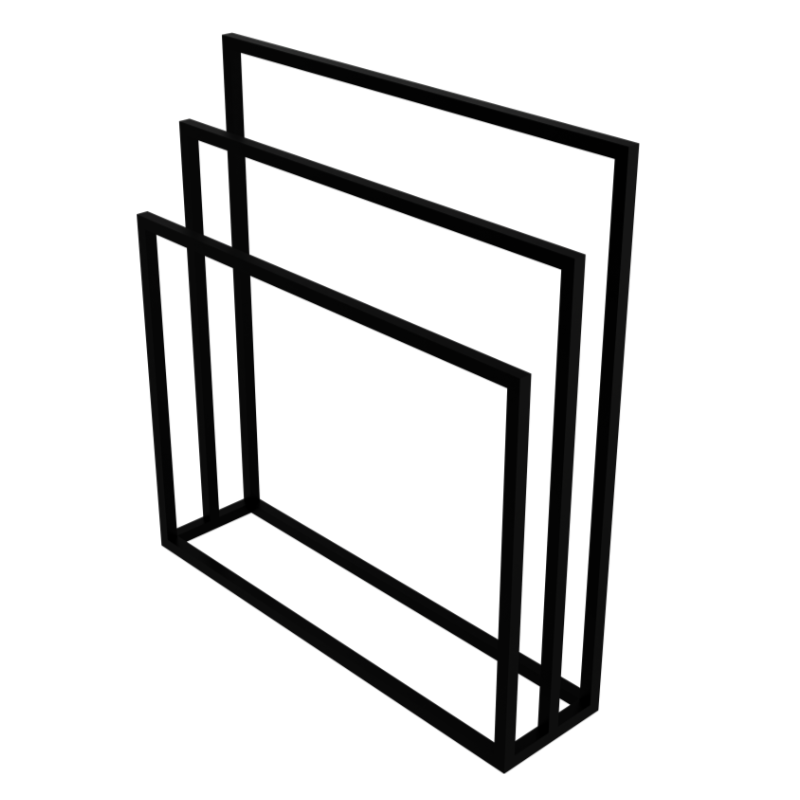 Stojak na ręcznik HALMAHERA 800 wyróżnia się nowoczesnym, geometrycznym kształtem, zbudowanym z trzech prostokątnych ramion. Jego rozmiar jest idealny do średnich i dużych łazienek, oferując miejsce na dużą ilość ręczników. Minimalistyczny design w połączeniu z matową czernią tworzy efektowny element dekoracyjny, który doskonale wpisuje się w nowoczesne, eleganckie oraz loftowe wnętrza. Korzystając z tego stojaka na ręczniki, Twoja łazienka zyska estetyczny i świeży wygląd.