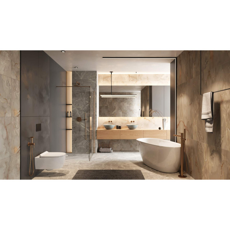 Bateria do Bidetu Bidetta o Numerze Modelu AREX.1204GB - Przykład Elegancji i Praktyczności w Twojej ŁazienceOferujemy najnowocześniejszą baterię do bidetu typu bidetta, pochodzącą z linii Pi i mającą numer modelu AREX.1204GB, w modnym odcieniu szczotkowanego złota. Ta bateria, z ceramiczną głowicą od Kerox, jest w stanie przemienić standardową miskę WC w wielozadaniowy bidet, zapewniając Ci pełną swobodę i komfort podczas użytkowania.Kilka istotnych cech:- Wykończenie w Odcieniu Szczotkowanego Złota: To eleganckie i trwałe wykończenie doda szyku każdej łazience.- Ceramiczna Głowica od Kerox: Głowica ceramiczna wysokiej jakości umożliwia precyzyjne dostosowanie temperatury wody, co jest kluczowe dla komfortu użytkowania.- Wielofunkcyjność Bidetta: Umożliwia łatwą przemianę tradycyjnej miski WC w bidet, co jest idealne dla mniejszych łazienek lub jako dodatkowe udogodnienie higieniczne.- Wąż o Długości 1200 mm: Zapewnia elastyczność i wygodę, umożliwiając łatwe dostosowanie do Twoich potrzeb.- Końcówka Bidetowa z Włącznikiem: Umożliwia łatwe kontrolowanie przepływu wody, zapewniając wygodę i higienę.- Dodatkowa Regulacja Temperatury: Daje Ci pełną kontrolę nad temperaturą wody dla poprawy komfortu i bezpieczeństwa.Bateria do bidetu typu bidetta o numerze modelu AREX.1204GB z serii Pi w odcieniu szczotkowanego złota to doskonałe rozwiązanie dla osoby ceniącej praktyczność i elegancki wygląd. Z ceramiczną głowicą od Kerox, 1200 mm wężem i końcówką bidetu z włącznikiem, ta bateria do bidetu gwarantuje pełną swobodę i komfort podczas korzystania, umożliwiając łatwą przemianę miski WC w wielofunkcyjny bidet. Jej modne złote wykończenie szczotkowane sprawia, że jest to zarówno praktyczny, jak i stylowy dodatek do każdej łazienki.