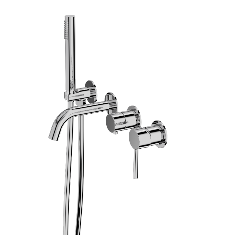 Idealnie dopasowana do współczesnych projektów łazienek, podtynkowa bateria wannowa harmonijnie współgra z czystymi liniami i stonowanymi barwami, tworząc spójną i elegancką przestrzeń.