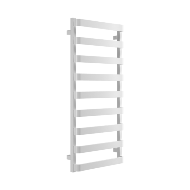 Elementy grzewcze są szerokie i płaskie, rozmieszczone równolegle do siebie, w pionowej linii prostopadłej do kolektorów. Niecodzienne wyprofilowanie elementów w kształcie "C" daje formę, która umożliwia łatwe suszenie tekstyliów. Dlatego grzejnik Meteor jest świetnym wyborem jako suszarka na ręczniki na każdą porę roku.