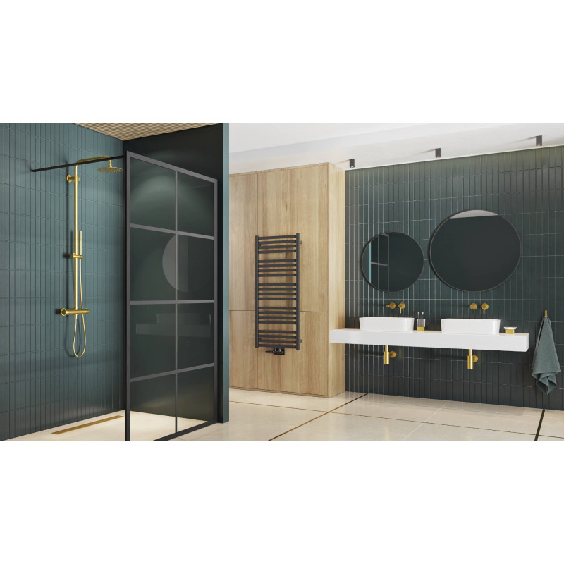 Dodatkową ochronę zapewnia lustro dzięki ochronnej folii, zaaplikowanej od tyłu, która redukuje ryzyko rozpryskiwania odłamków szkła i ewentualnej kontuzji w przypadku stłuczenia lustra. Lustro dostępne jest w dwóch rozmiarach: 600 mm oraz 800 mm. Kolory ramy obejmują anodowany czarny mat, szczotkowane złoto oraz lakierowany biały mat.