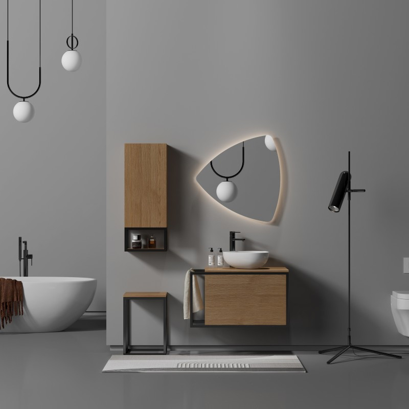 Aranżacja łazienki to wyjątkowe zadanie, dające możliwość wyrażenia naszych preferencji i stylu. Kluczowym elementem wyposażenia łazienki jest mebel, który oprócz funkcjonalności, powinien również zachwycać wyglądem. Nasza szafka stojąca przypominająca drewno z metalowymi akcentami stanowi idealny kompromis tych dwóch elementów, wnosi do łazienki zarówno harmonię, jak i szyk. Metalowa część konstrukcji zapewnia jej solidność oraz odporność na typowe łazienkowe warunki, takie jak wilgotność i zmiany temperatury. Dzięki temu masz pewność, że szafka będzie służyć przez długie lata. To doskonały wybór do każdej łazienki, ponieważ jej wyjątkowy projekt, łączący naturalne piękno drewna z solidnością metalu, dodaje wnętrzu osobowości i elegancji. To perfekcyjne rozwiązanie dla tych, którzy cenią sobie zarówno użyteczność, jak i wygląd.