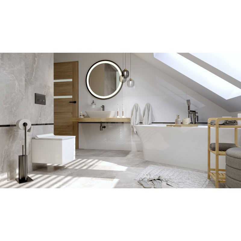 Wisząca miska FAGO charakteryzuje się geometryczną formą o prostokątnych kształtach i prostych liniach. Cienka deska w wersji slim, zakończona w wyjątkowy sposób, dodaje jej niebanalnego wyglądu. Jej biały odcień i surowa stylistyka idealnie komponują się z aranżacjami łazienek w stylu loftowym czy nowoczesnym. Do miski WC FAGO można dopasować umywalkę Luneza oraz wannę Rilassa, które utrzymane są w podobnej stylistyce, tworząc spójne wnętrze. Można również nadać łazience eklektycznego uroku, wybierając zaokrągloną ceramikę.