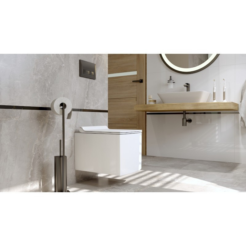 Miska WC FAGO wyposażona jest w solidną deskę z duroplastu z metalowymi zawiasami. Funkcje powolnego opadania i łatwego demontażu zwiększają wygodę i trwałość użytkowania. Model FAGO, pozbawiony rantów, oferuje funkcję RIM+ półotwartą, która minimalizuje ryzyko nagromadzenia osadów, bakterii i innych zanieczyszczeń przy jednoczesnym niskim zużyciu wody. Dzięki misce FAGO łatwo jest utrzymać najwyższe standardy czystości w łazience. Produkt jest niezawodny i funkcjonalny, co potwierdza 15-letnia gwarancja.