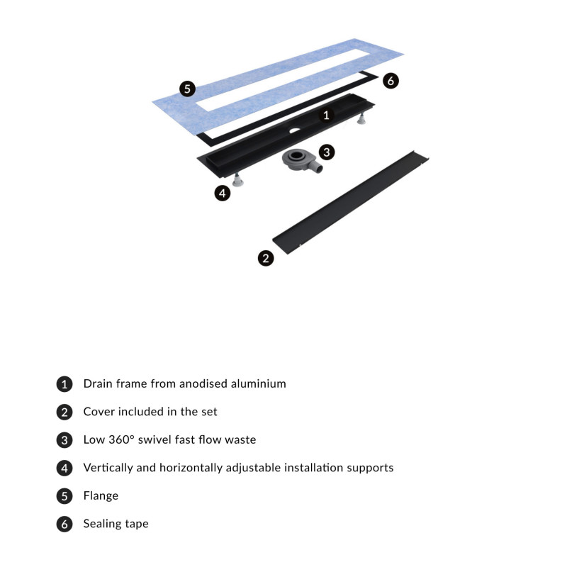 Prysznicowy odpływ liniowy OMNIRES LOWFIX wyróżnia się minimalistycznym designem oraz wyjątkowo niską konstrukcją, która gwarantuje większą swobodę instalacji. Odpływ został wyposażony w maskownicę z powierzchnią przeznaczoną do wypełniania płytkami, pozwalając na stworzenie harmonijnego połączenia z podłogą w łazience. Dzięki wirowej konstrukcji syfon gwarantuje wysoką wydajność odbioru wody i tym samym komfort użytkowania podczas kąpieli. Produkt został wykonany z wysokiej jakości anodowanego aluminium, które zapewnia wyjątkową trwałość i odporność na korozję, a jego monolityczna konstrukcja daje gwarancję pełnej szczelności.