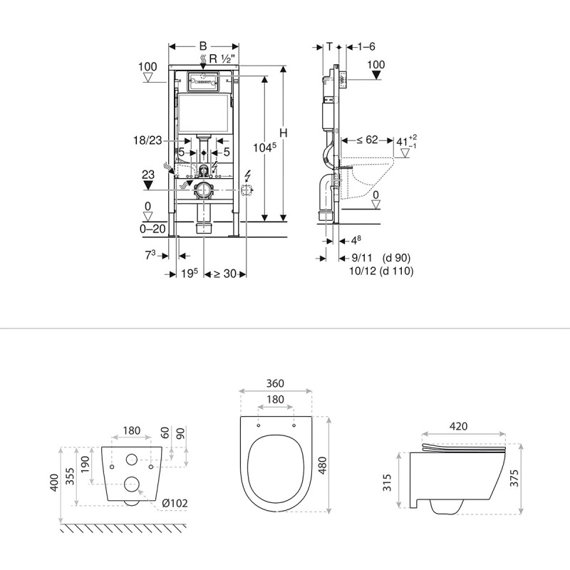 Geberit Duofix Basic to stelaż WC łączący nowoczesny design z funkcjonalną technologią, idealny do zabudów instalacyjnych sięgających sufitu. Przystosowany jest do montażu toalet wiszących zgodnych z normą EN 33:2011 i wyróżnia się wszechstronnością. Solidna, malowana proszkowo konstrukcja ramy zapewnia stabilność i trwałość. Ocynkowane, regulowane nóżki montażowe (zakres 0–20 cm) ułatwiają instalację.