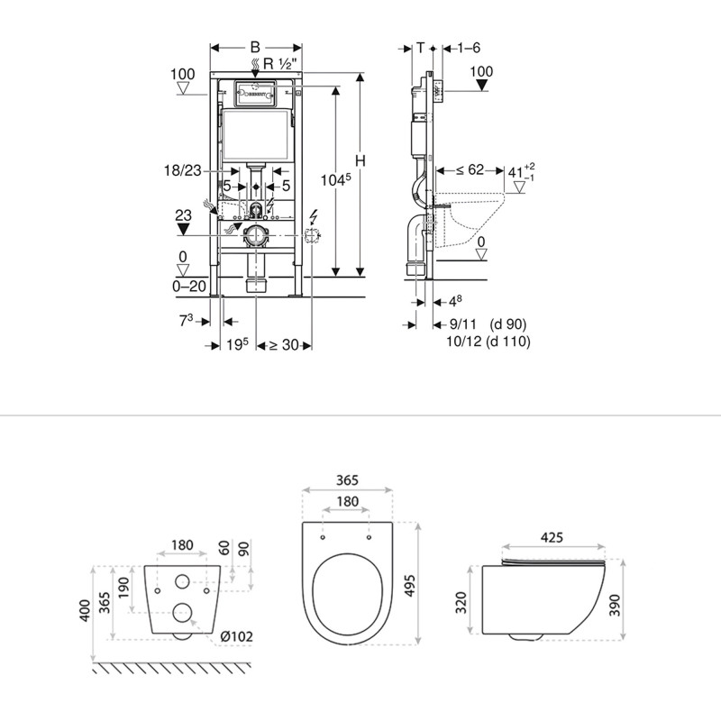 Geberit Duofix Basic to stelaż WC łączący nowoczesny design z funkcjonalną technologią, idealny do zabudów instalacyjnych sięgających sufitu. Przystosowany jest do montażu toalet wiszących zgodnych z normą EN 33:2011 i wyróżnia się wszechstronnością. Solidna, malowana proszkowo konstrukcja ramy zapewnia stabilność i trwałość. Ocynkowane, regulowane nóżki montażowe (zakres 0–20 cm) ułatwiają instalację.