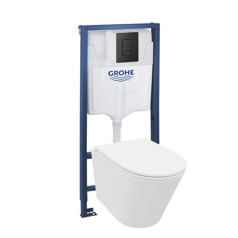 Homelike Zestaw GROHE 4 w 1 – Miska Galve 3.0 Tornado + Zestaw do montażu podtynkowego GROHE 4 w 1 + Deska WC SoftClose + Czarny prostokątny przycisk | Czarny przycisk | Zestaw kompletny | Spłuczka podtynkowa | Kompletna toaleta