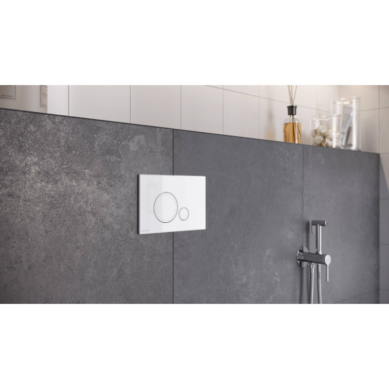 Cechuje go minimalistyczny design - obudowa spłuczki wystaje zaledwie 6 mm ponad powierzchnię płytki. Przycisk Ringo dostępny jest w trzech kolorach do wyboru: chrom, biały połysk i czarny soft.