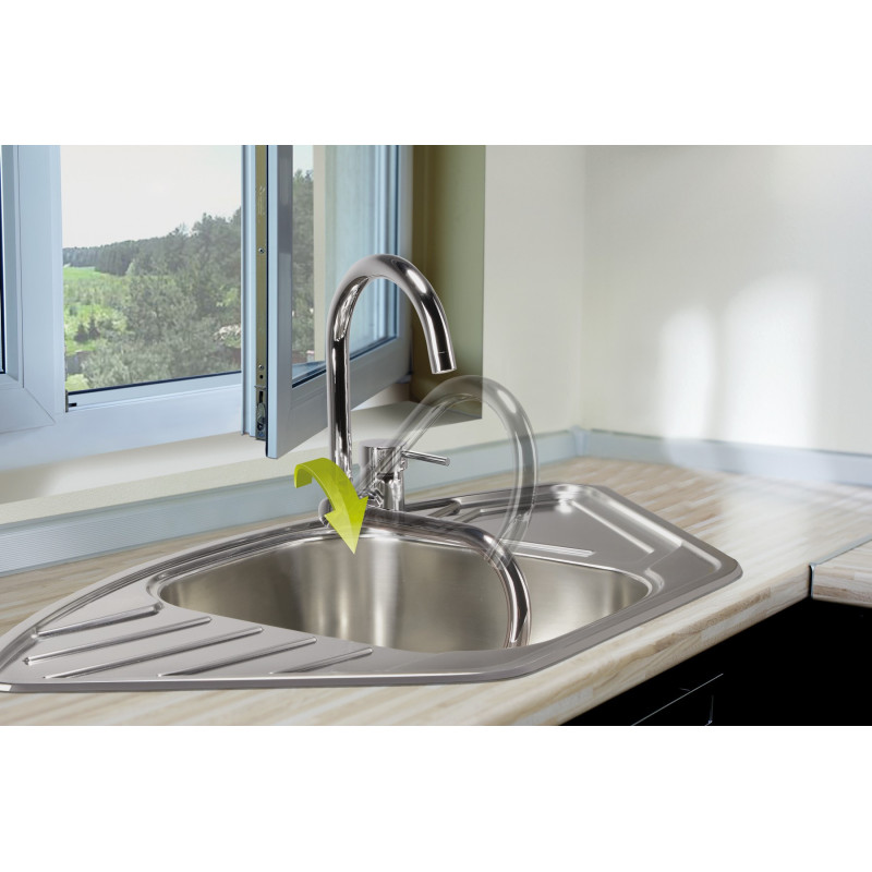Wylewka podokienna, składana – idealne rozwiązanie do zlewów przy oknie, bez kolizji ze skrzydłem.
