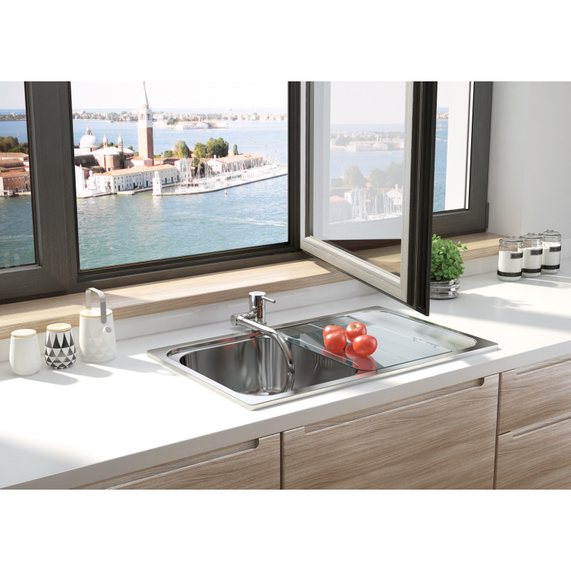 Eleganczna i funkcjonalna bateria kuchenna Deante Aster w wykończeniu chrom doskonale sprawdzi się przy zlewie umieszczonym pod oknem. Składana wylewka umożliwia swobodne otwieranie skrzydła okiennego, a jednouchwytowy mieszacz zapewnia szybkie i precyzyjne ustawienie temperatury oraz ciśnienia wody. Cicha praca (grupa akustyczna I) i oszczędny przepływ (klasa Z 4–9 l/min) podnoszą komfort codziennego użytkowania i pomagają zmniejszyć zużycie wody.