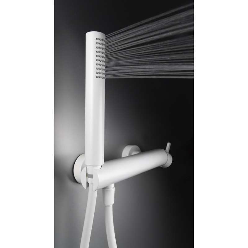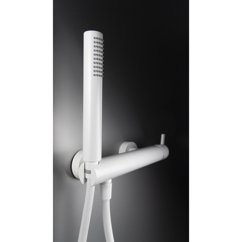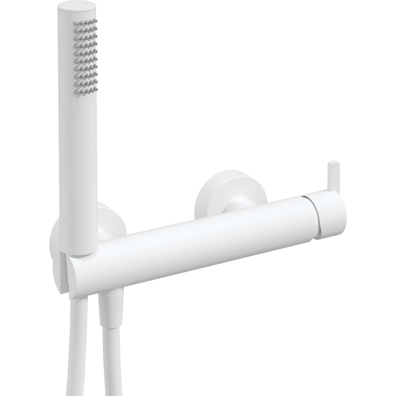 Minimalistyczna, a jednocześnie wyrazista – bateria prysznicowa Deante Silia została odlana z wysokogatunkowego mosiądzu i pokryta matową bielą Bianco. Smukła, opływowa linia korpusu oraz starannie zaprojektowana dźwignia tworzą spójny, subtelny design. Zintegrowany z baterią uchwyt na słuchawkę porządkuje przestrzeń prysznica i podkreśla estetykę całego zestawu.