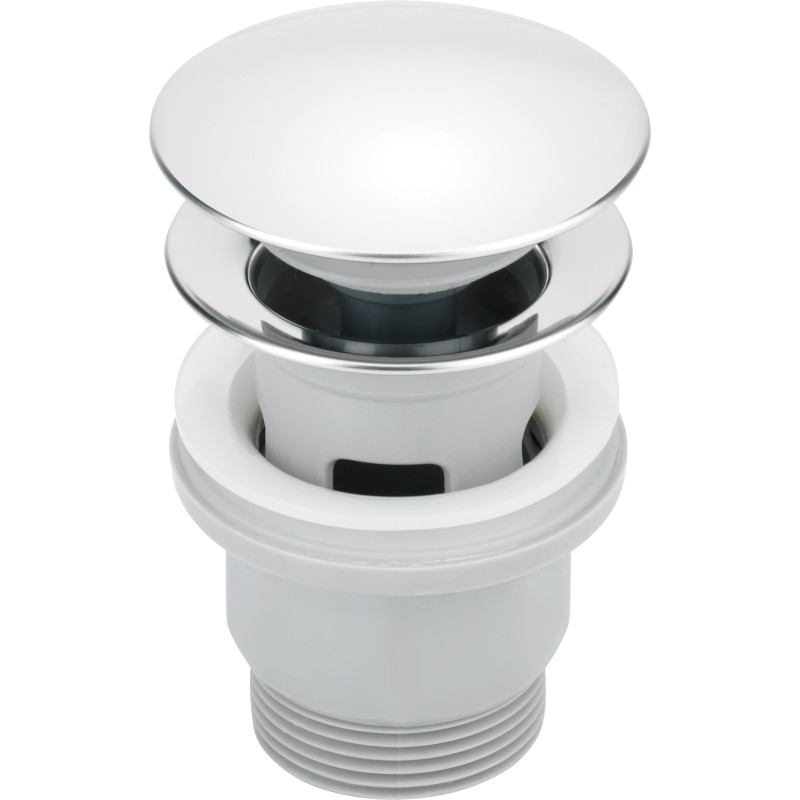 Praktyczny korek z mechanizmem click-clack umożliwia szybkie zamykanie i otwieranie odpływu jednym naciśnięciem. Model jest przystosowany do umywalek i bidetów z otworem przelewowym, a lśniąca chromowana powierzchnia nadaje mu elegancki wygląd i ułatwia dopasowanie do większości baterii.