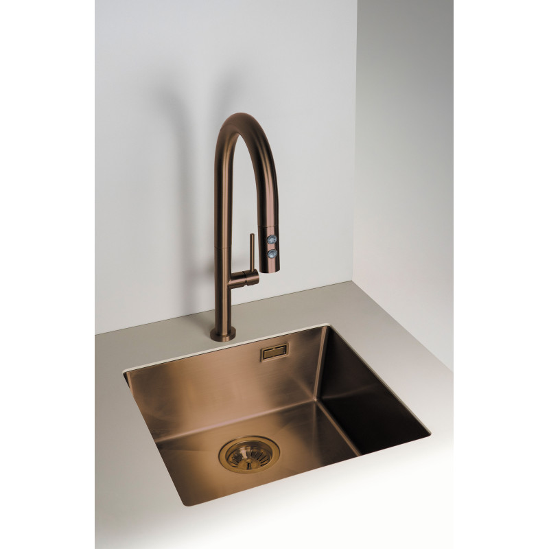 Jednokomorowy zlew kuchenny z linii Olfato Precious zachwyca eleganckim, szczotkowanym odcieniem brązu i minimalistyczną formą. Wykonany ze stali nierdzewnej typu 304, jest odporny na rdzę, wysoką temperaturę i przebarwienia, nie pochłania zapachów i sprzyja utrzymaniu higieny. Model daje możliwość montażu na kilka sposobów, dzięki czemu łatwo dopasujesz go do projektu swojej kuchni.