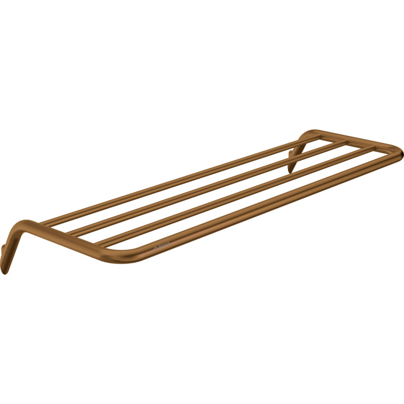 Stylowa półka ścienna z linii Silia łączy wyrafinowane wzornictwo z długowieczną jakością. Korpus wykonany z solidnego mosiądzu pokryto trwałą powłoką w odcieniu szczotkowanego brązu, nakładaną metodą PVD. Dyskretne, niewidoczne po montażu mocowania dbają o nienaganny wygląd całości, a opływowe kształty ułatwiają utrzymanie czystości. To funkcjonalny element wyposażenia do każdej przestrzeni – od kompaktowej łazienki, przez przestronny salon kąpielowy, aż po przedpokój, gdzie sprawdzi się jako miejsce na czapki, szaliki lub ręczniki.