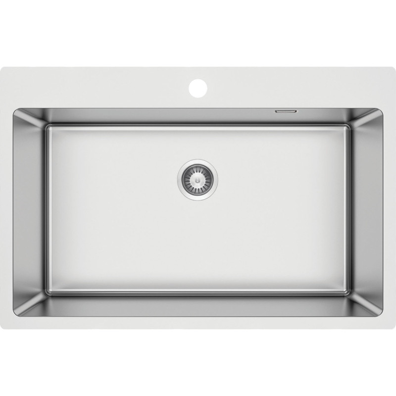 Jednokomorowy zlewozmywak z linii Olfato wykonano z wysokogatunkowej stali nierdzewnej 304 o eleganckim, szczotkowanym wykończeniu. Przestronna i głęboka komora zapewnia swobodę pracy, a higieniczne właściwości stali pomagają utrzymać czystość w kuchni. Dyskretna maskownica zasłania odpływ, podkreślając minimalistyczny wygląd. W komplecie znajduje się syfon Space-saver, który zwalnia miejsce w szafce i ułatwia organizację, np. koszy do segregacji. Model oferuje trzy warianty montażu, w tym wpuszczany i podwieszany.