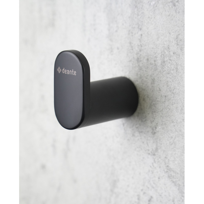 Stylowy, kompaktowy haczyk, który z łatwością pomieści ręcznik lub szlafrok. Minimalistyczna, okrągła forma i eleganckie, matowe wykończenie w kolorze czarnym sprawiają, że świetnie wpisuje się w wystrój nowoczesnych łazienek.