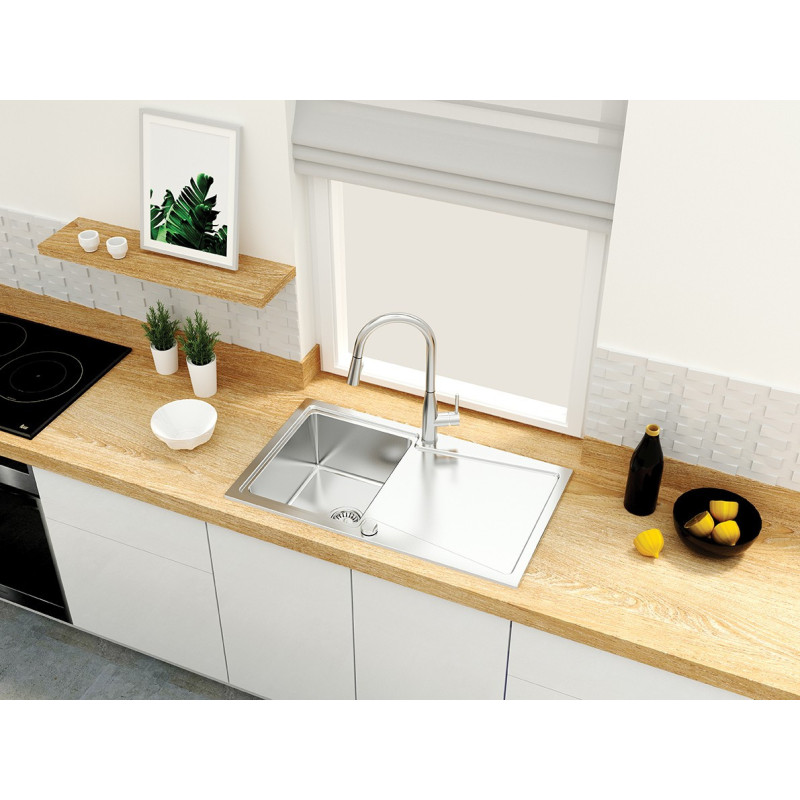 Wyciągana wylewka zapewnia swobodę manewrowania strumieniem wody. Dzięki niej łatwo opłuczesz blachy z piekarnika, napełnisz wysoki garnek bez wkładania go do komory zlewu i sprawnie utrzymasz w czystości okolice baterii – bez rozchlapywania i przypadkowego zalewania blatu.