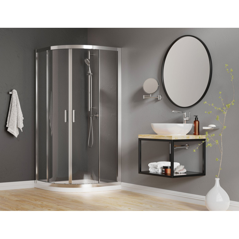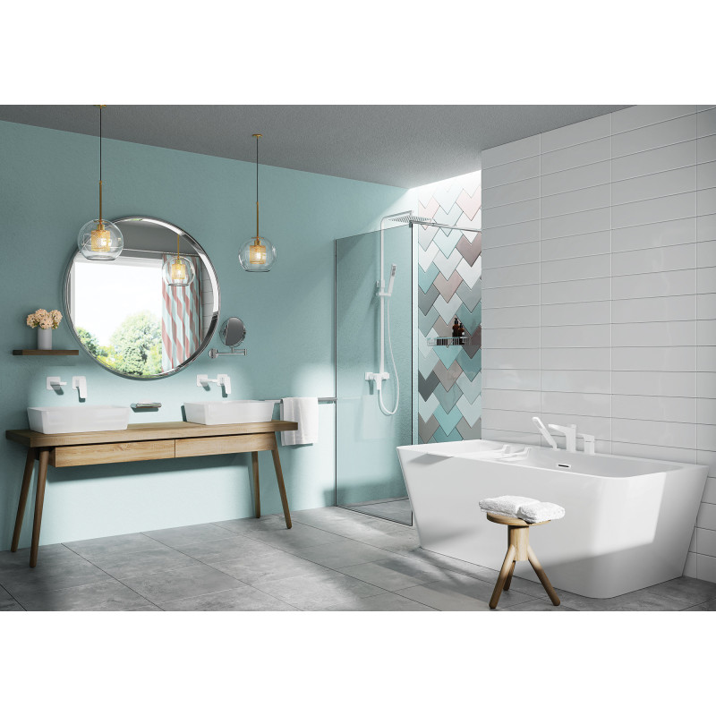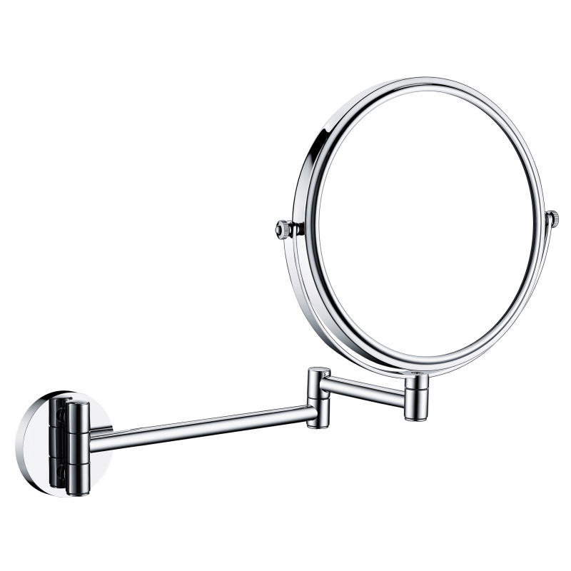 Eleganckie lusterko ścienne z serii Round to praktyczny dodatek do każdej łazienki. Dzięki długiemu, ruchomemu ramieniu łatwo ustawisz taflę pod idealnym kątem. Zwierciadło jest dwustronne – jedna strona prezentuje standardowe odbicie, a druga zapewnia trzykrotne powiększenie, co ułatwia precyzyjny makijaż i pielęgnację. Błyszczące, chromowane wykończenie harmonijnie komponuje się z innymi akcesoriami z tej linii.