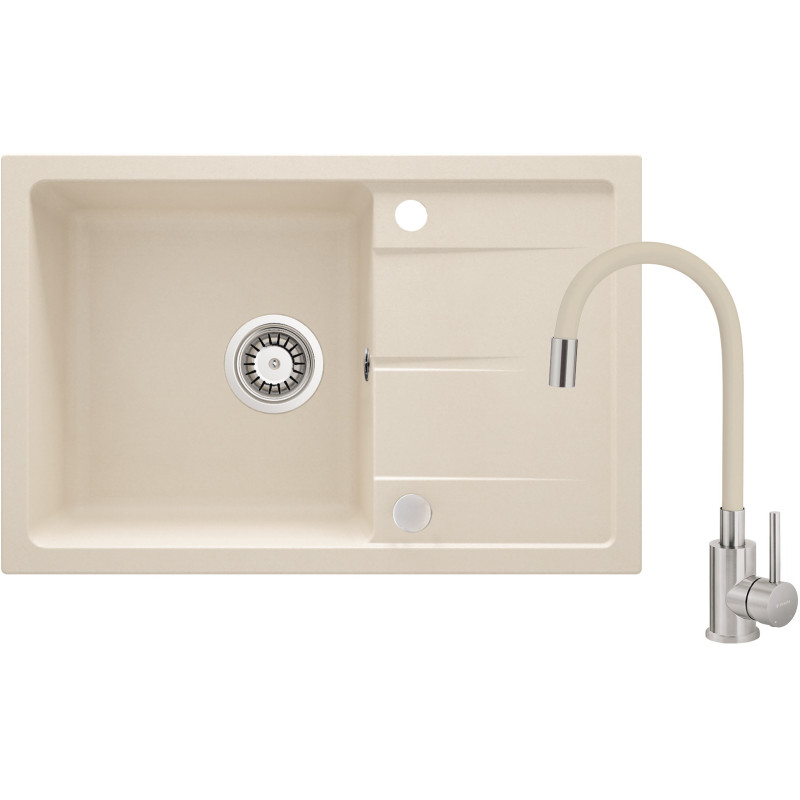 Deante Leda – zestaw: granitowy zlewozmywak z elastyczną baterią, beż/stal