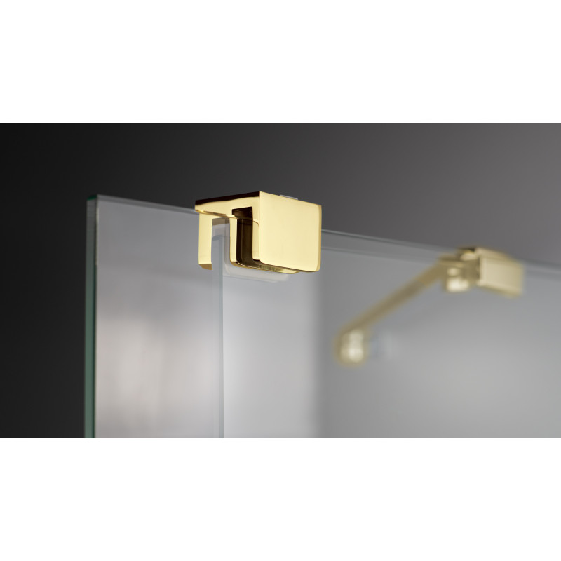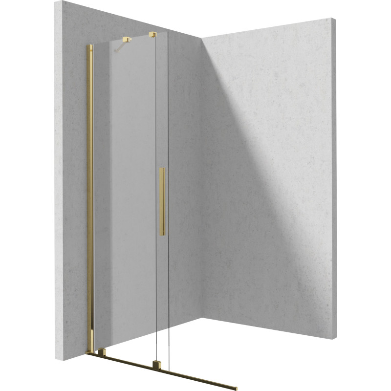 Deante Prizma – elegancka ścianka prysznicowa walk-in, złoty połysk i szkło transparentne