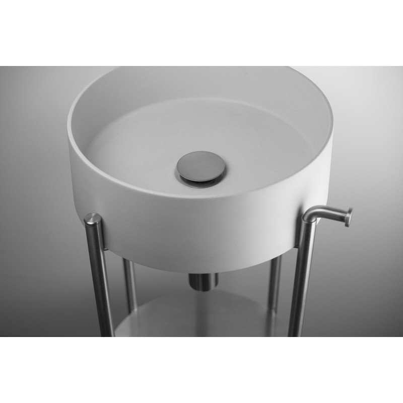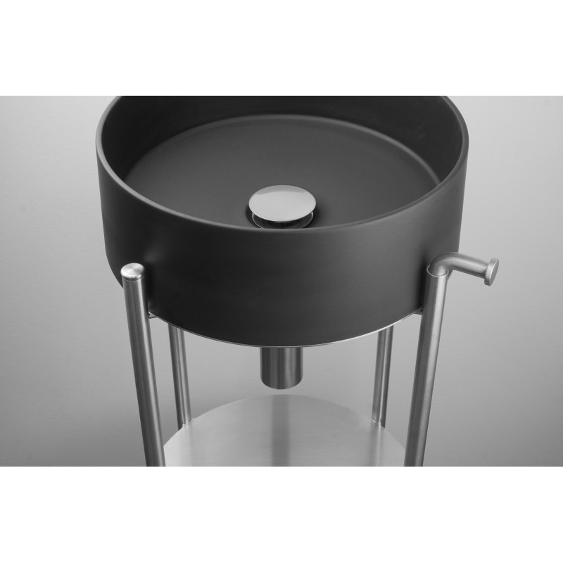 Stylowa i solidna konsola z kolekcji Silia to propozycja dla osób, które cenią porządek i elegancję w łazience. Konstrukcja z wysokogatunkowej stali nierdzewnej o wykończeniu szczotkowanym gwarantuje trwałość, a minimalistyczna forma pięknie eksponuje umywalkę z tej samej serii (ceramiczną lub granitową). Praktyczna półka na akcesoria i haczyk na ręcznik podnoszą wygodę użytkowania, a regulowane nóżki ułatwiają idealne wypoziomowanie mebla.