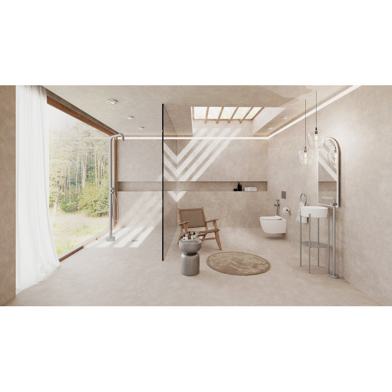 Konsola daje dużą swobodę aranżacji – możesz ustawić ją w dowolnym miejscu i połączyć z wybraną baterią: ścienną, podtynkową, kolumnową lub sufitową. Odwracalna konstrukcja pozwala dopasować układ elementów do układu wnętrza.