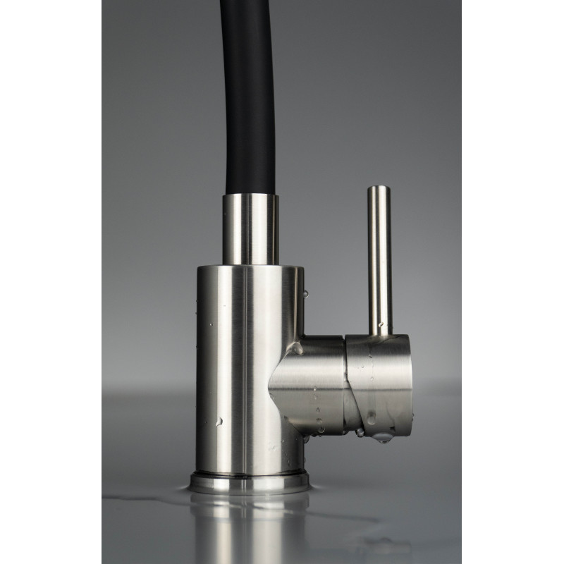 Stylowa i praktyczna bateria zlewozmywakowa, która łączy nowoczesną formę z wysoką funkcjonalnością. Stonowane połączenie stali i czerni sprawia, że model Neo Luno harmonijnie wpisze się w kuchnie modern, skandynawskie, a także bardziej klasyczne.