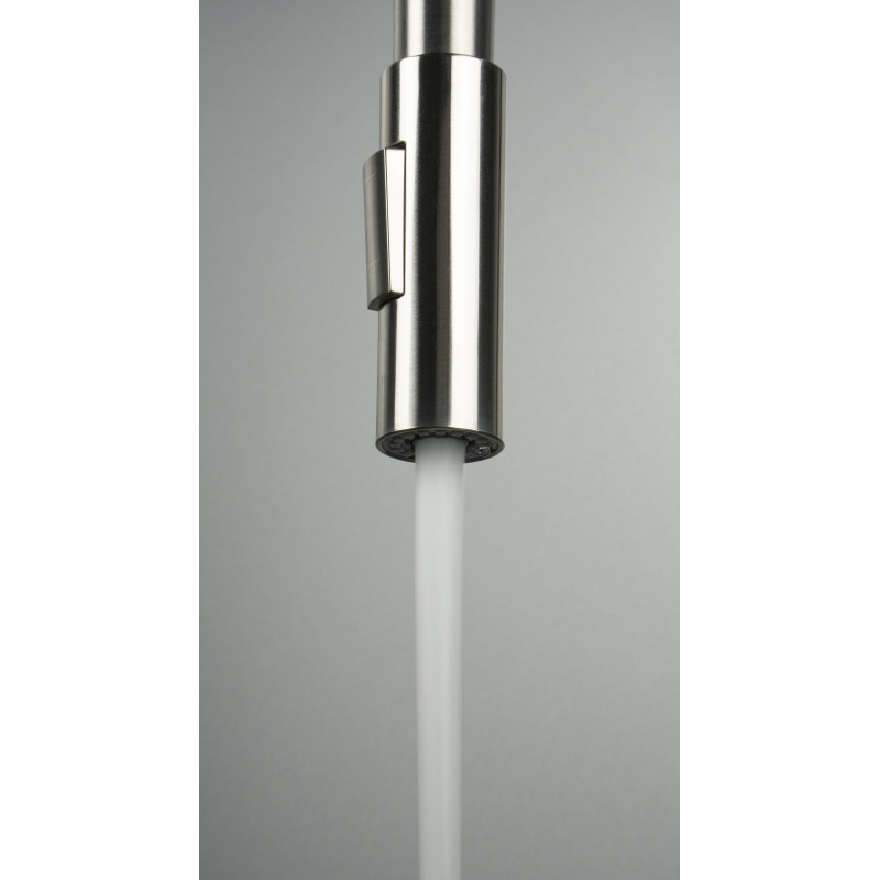 Dwufunkcyjna końcówka do baterii kuchennej umożliwia błyskawiczne przełączanie między dwoma typami strumienia: napowietrzonym oraz prysznicowym. Tryb napowietrzony świetnie sprawdza się przy codziennym zmywaniu – daje mocny, a zarazem oszczędny wypływ, który skutecznie usuwa zabrudzenia i pomaga ograniczyć zużycie wody. Z kolei strumień prysznicowy to delikatna, rozproszona woda idealna do płukania warzyw i owoców.