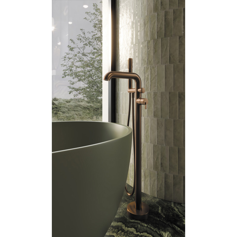 Elegancka bateria kolumnowa Silia to idealny wybór do wanien wolnostojących. Połączenie szlachetnej formy z nowoczesnymi rozwiązaniami – takimi jak silikonowy aerator, system Anti-Twist w wężu czy chłodna w dotyku słuchawka Cool-out – gwarantuje wygodę użytkowania na co dzień. Mosiężny korpus i ceramiczna głowica zapewniają trwałość, a regulowany kąt nachylenia słuchawki i precyzyjny, mechaniczny przełącznik funkcji podnoszą komfort kąpieli. Całość dopełnia wyjątkowe wykończenie w ciepłym odcieniu brązu szczotkowanego, które ociepla i uszlachetnia aranżację łazienki.