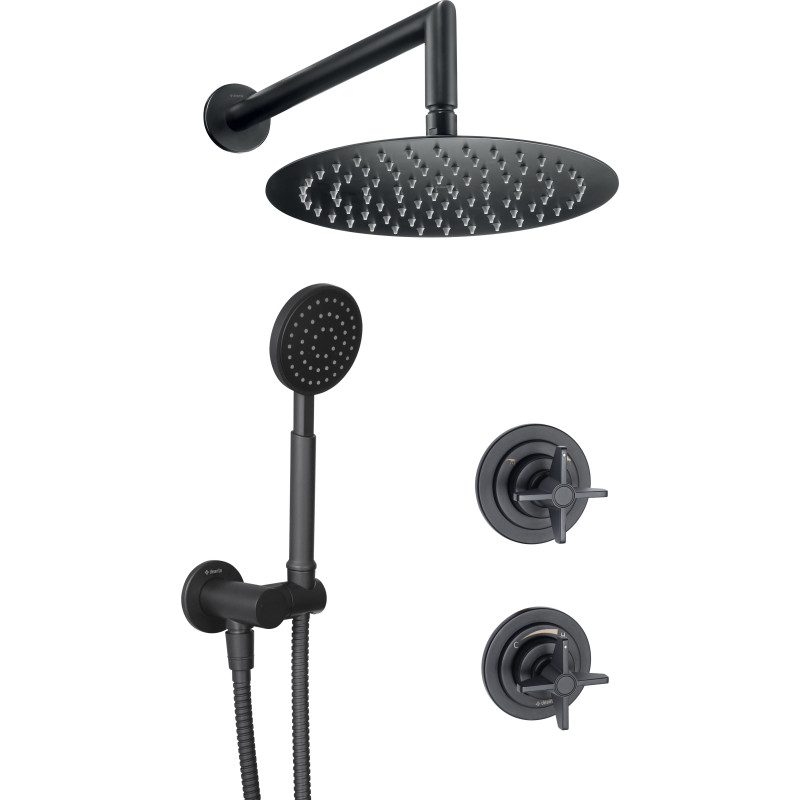 Elegancki zestaw prysznicowy Deante Temisto w wykończeniu czarny mat (nero) to rozwiązanie dla osób, które cenią minimalizm i porządek pod tynkiem. Okrągła deszczownica z mosiądzu i dysze z systemem anti‑calc dbają o komfort codziennych kąpieli, a spójny design wszystkich elementów nadaje łazience nowoczesny charakter.