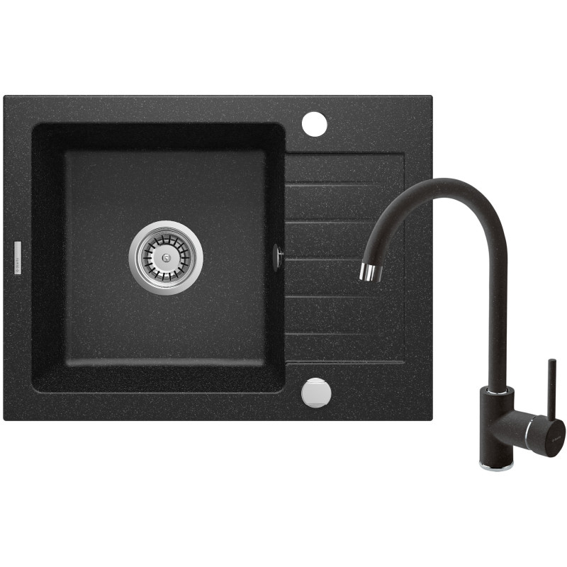 Deante Zorba ZQZA211A – granitowy zlewozmywak z baterią, kolor grafitowy