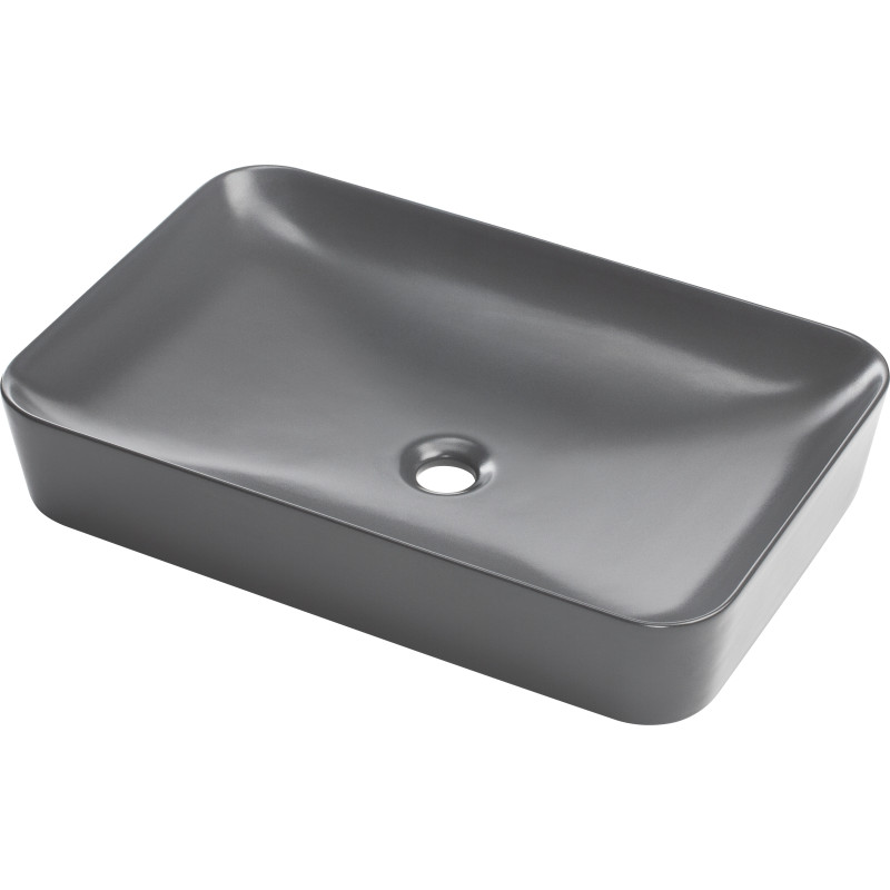 Prostokątna umywalka nablatowa Tess to połączenie minimalistycznego wzornictwa i nowoczesnego wykończenia w odcieniu titanium (antracyt). Wykonana z gęstej, odpornej ceramiki, świetnie znosi codzienne użytkowanie, a idealnie gładka misa bez przelewu ułatwia utrzymanie czystości.