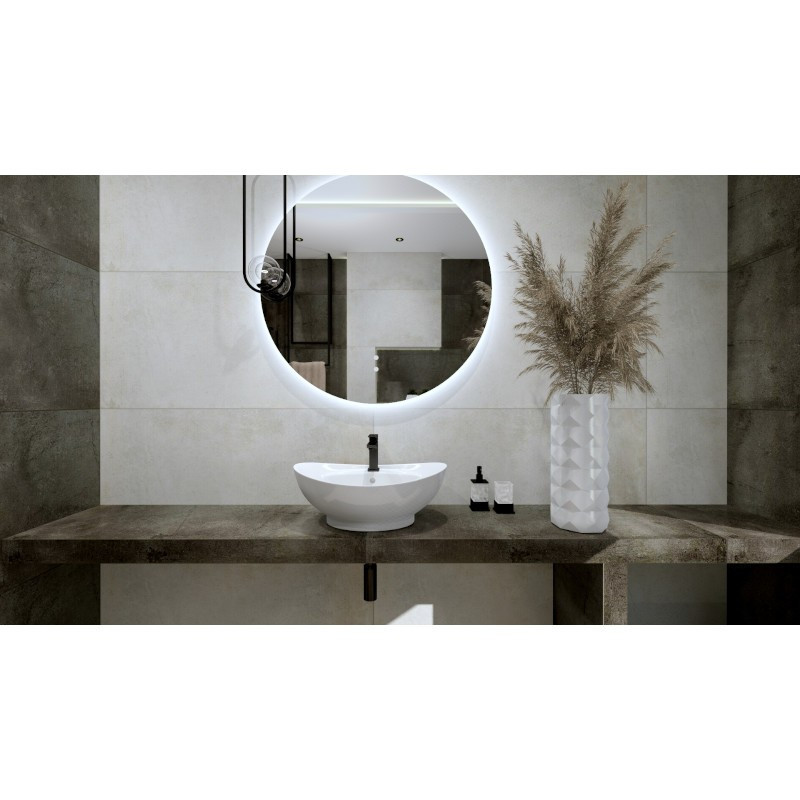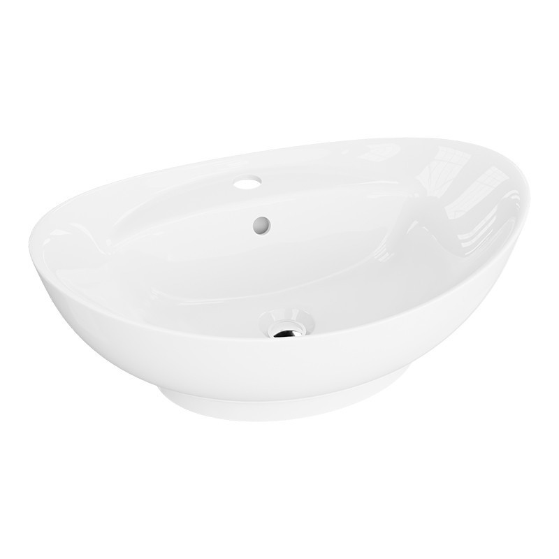Model TERRA charakteryzuje się okrągłą, wyraźnie zarysowaną podstawą, na której umieszczono owalną formę umywalki. Ta wersja cechuje się smukłą, elegancko zakrzywioną linią. Umywalka w p