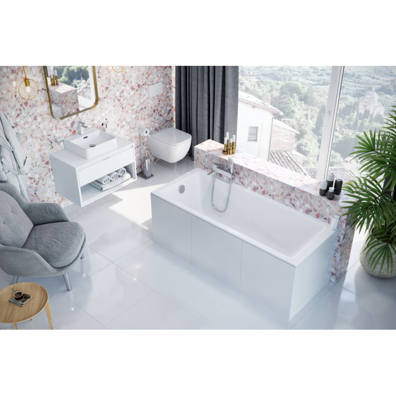 Wanna Wave Slim to wykwintny model posiadający prostą i elegancką formę. Niski rant, o wymiarach 18mm, nadaje delikatność i efektowność w systemie zamontowanych płytek. Ten minimalistyczny wygląd pozwala na instalację baterii nawannowej bez konieczności dodatkowego wzmocnienia.