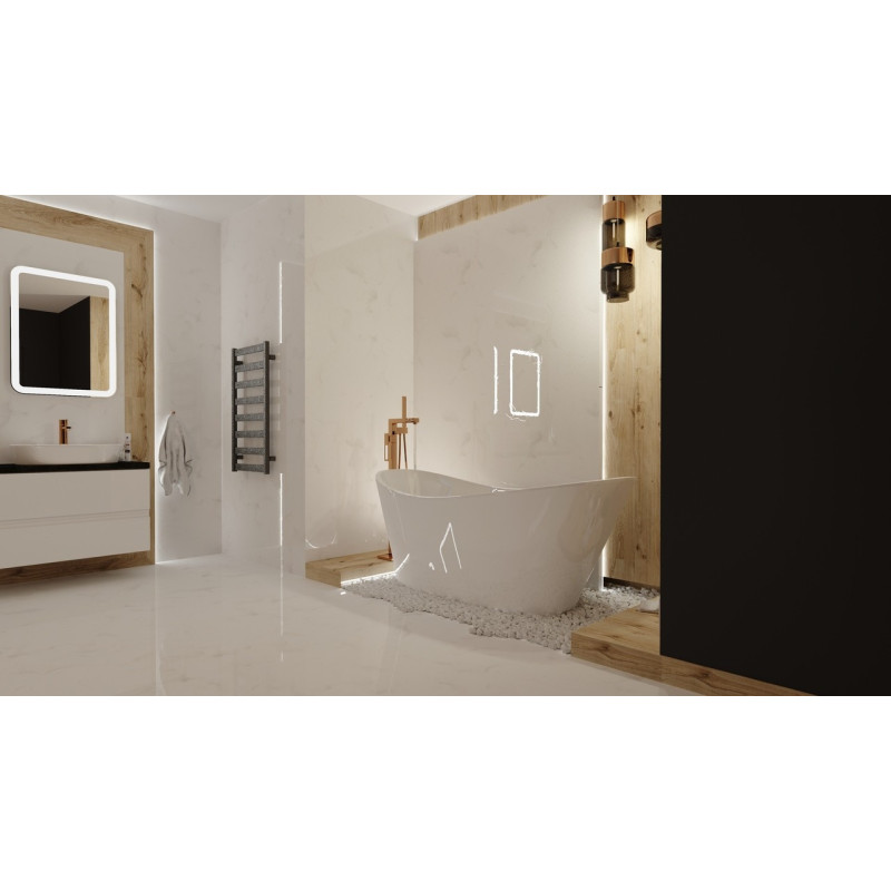 Model wanny wolnostojącej BELLAGIO ma owalną formę, która wyróżnia się eleganckim i asymetrycznym designem. Jej nieregularnie pochylone krawędzie nadają produktowi unikalny charakter. Biała tonacja w połączeniu z wbudowaną obudową tworzy harmonijną kompozycję, idealnie komponującą się z każdą stylową łazienką. Wanna jest przeznaczona do większych pomieszczeń kąpielowych, więc gdy pragniesz stworzyć niebanalne i eleganckie wnętrze, BELLAGIO będzie doskonałym wyborem.