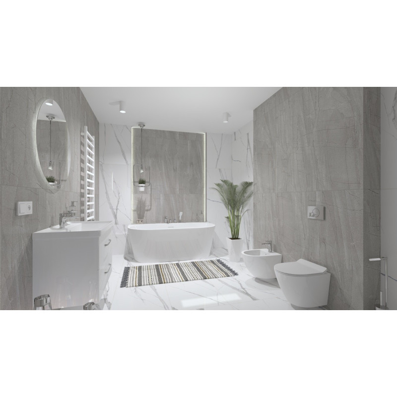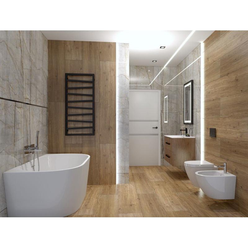 CALDERA, dostępna jako wanna wolnostojąca lub przyścienna, posiada wzmacniający stelaż poziomujący oraz regulowane nóżki. Wyposażona jest w syfon z korkiem click-clack, co pozwala na szybkie i łatwe zamykanie oraz otwieranie odpływu. Wbudowany przelew zabezpiecza przed przelaniem wody, chroniąc otoczenie wanny przed uszkodzeniami. Produkt wykonany z akrylu jest odporny na zarysowania i przebarwienia, a także utrudnia rozwój bakterii. Dzięki zastosowanemu materiałowi wanna jest lekka, o gładkiej i przyjemnie ciepłej powierzchni. Pogrubione i wzmocnione dno zapewnia trwałość i wytrzymałość produktu, co potwierdza 10-letnia gwarancja. CALDERA to doskonały wybór dla miłośników estetyki, komfortu i niezawodności.